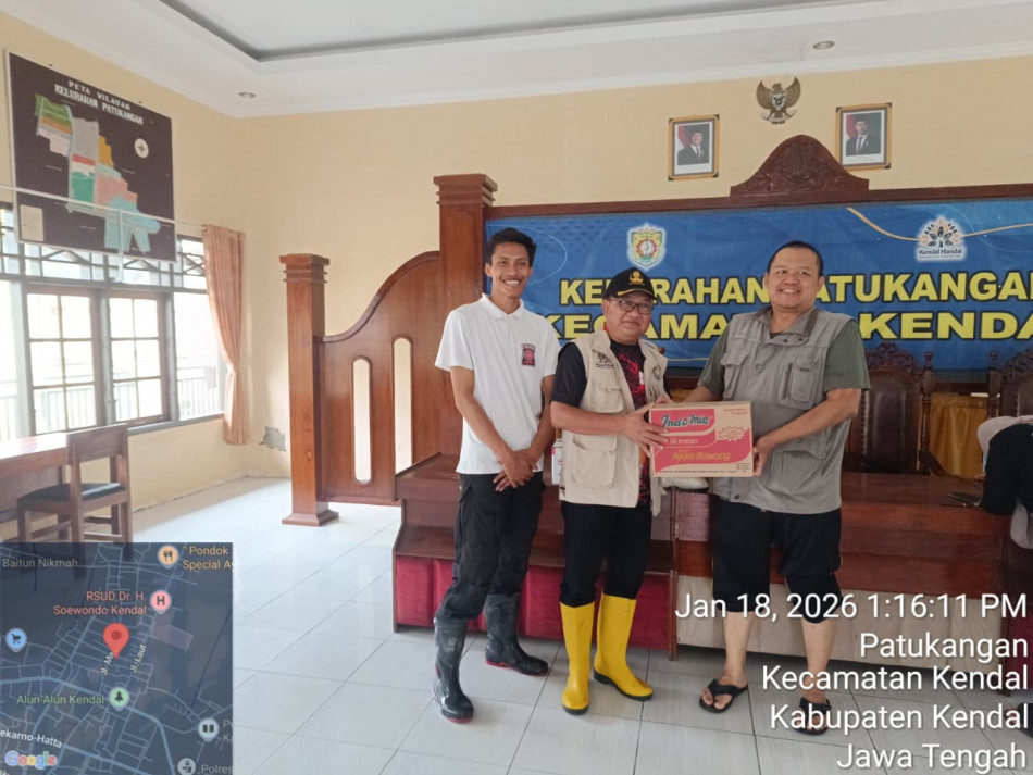 Banjir yang menggenang wilayah Kelurahan Patukangan sejak 15 Januari 2026.Kelurahan Patukangan menerima bantuan dan membuat dapur umum serta menyalurkan bantuan tersebut kepada warga Kelurahan Patukangan yang berdampak banjir.Terimakasih kepada seluruh pihak yang telah memberikan bantuan Basnas Kendal, Bpbd Kabupaten Kendal,Dinas sosial Kabupaten Kendal ,PDI Perjuangan dpc Kendal, R1sport.pelaksanaan tanggal 16,17,18, 19 Januari 2026 di Kelurahan Patukangan