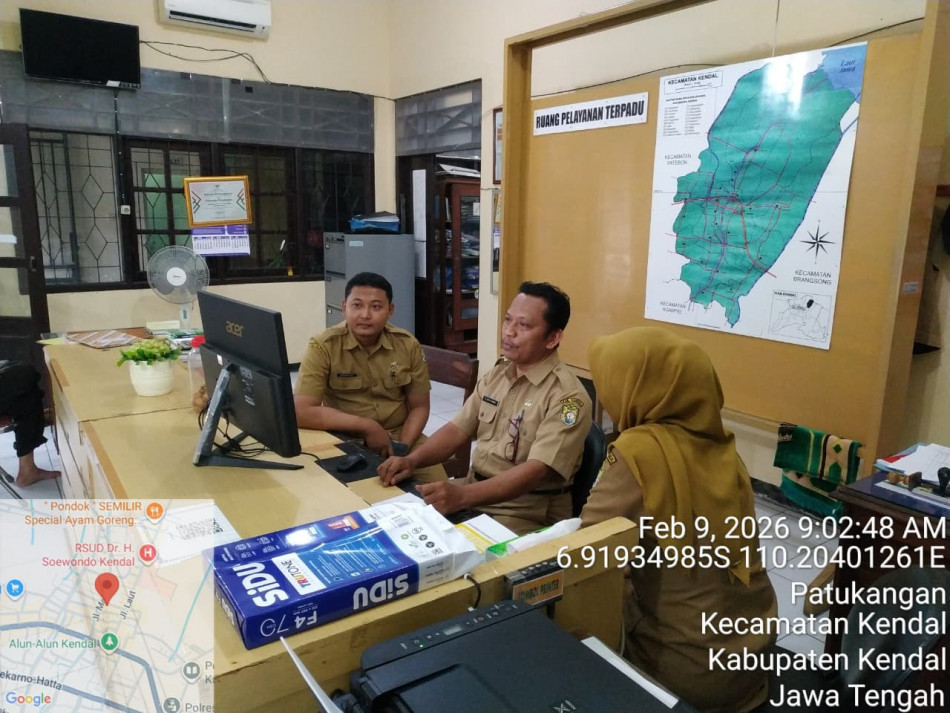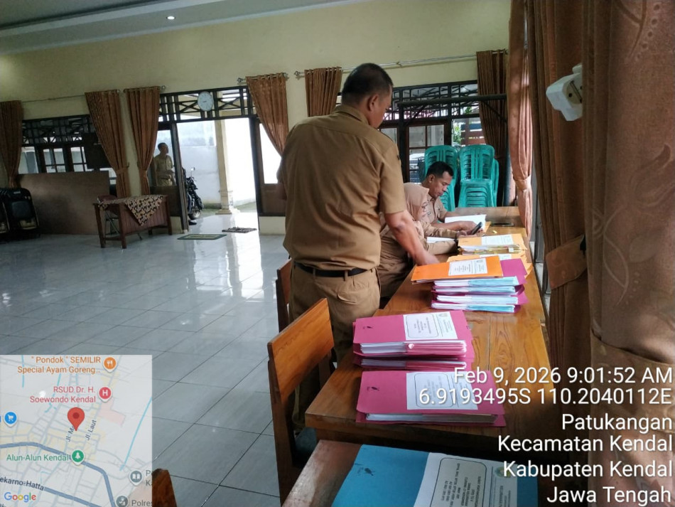 Pembinaan Administrasi Kantor Kelurahan Patukangan yang dilaksanakan oleh Bagian Hukum Setda Kabupaten Kendal, Bagian Pemerintahan Setda Kabupaten Kendal dan BPKAD Kab Kendal pada hari Senin, 9 Februari 2026 di Kelurahan Patukangan